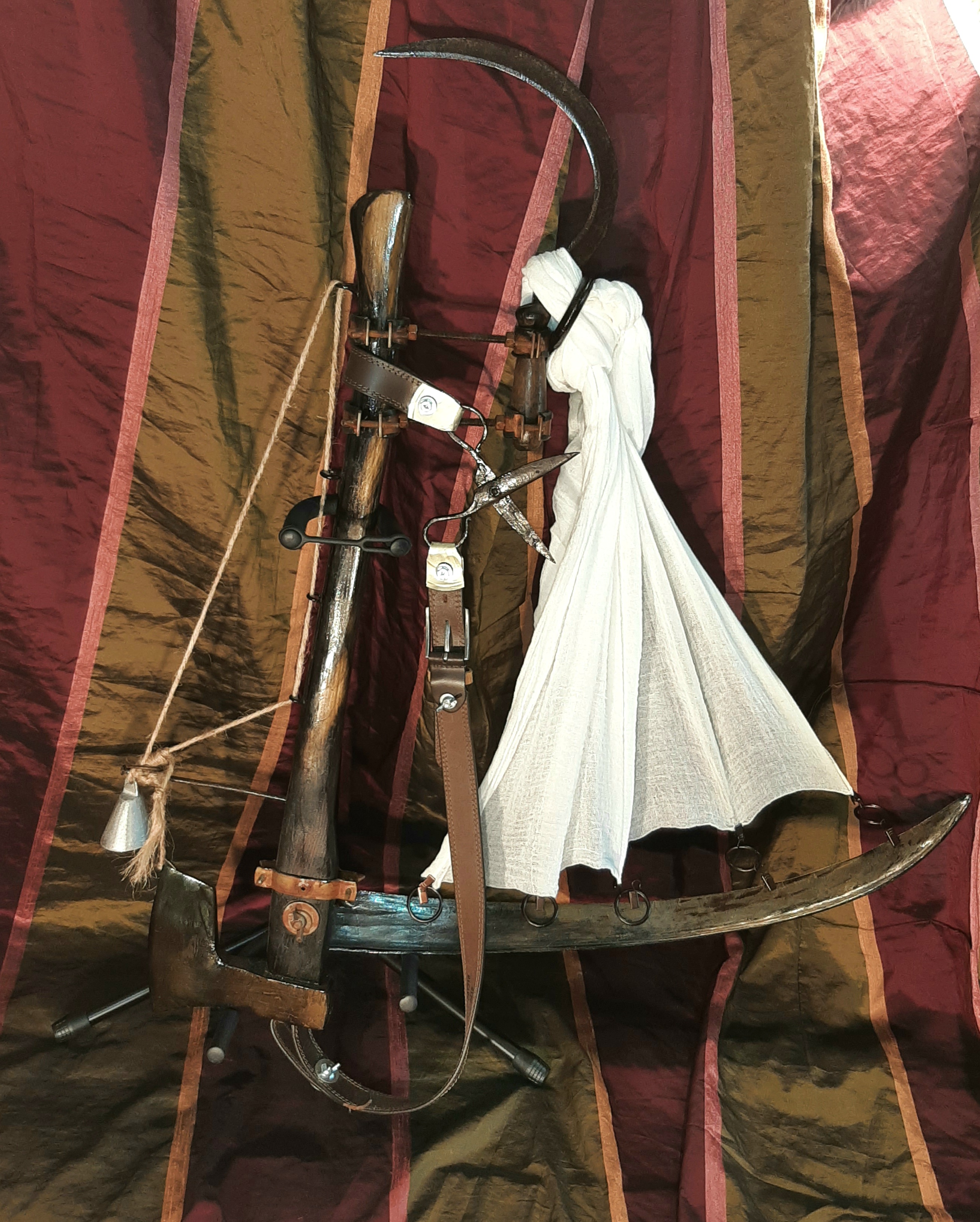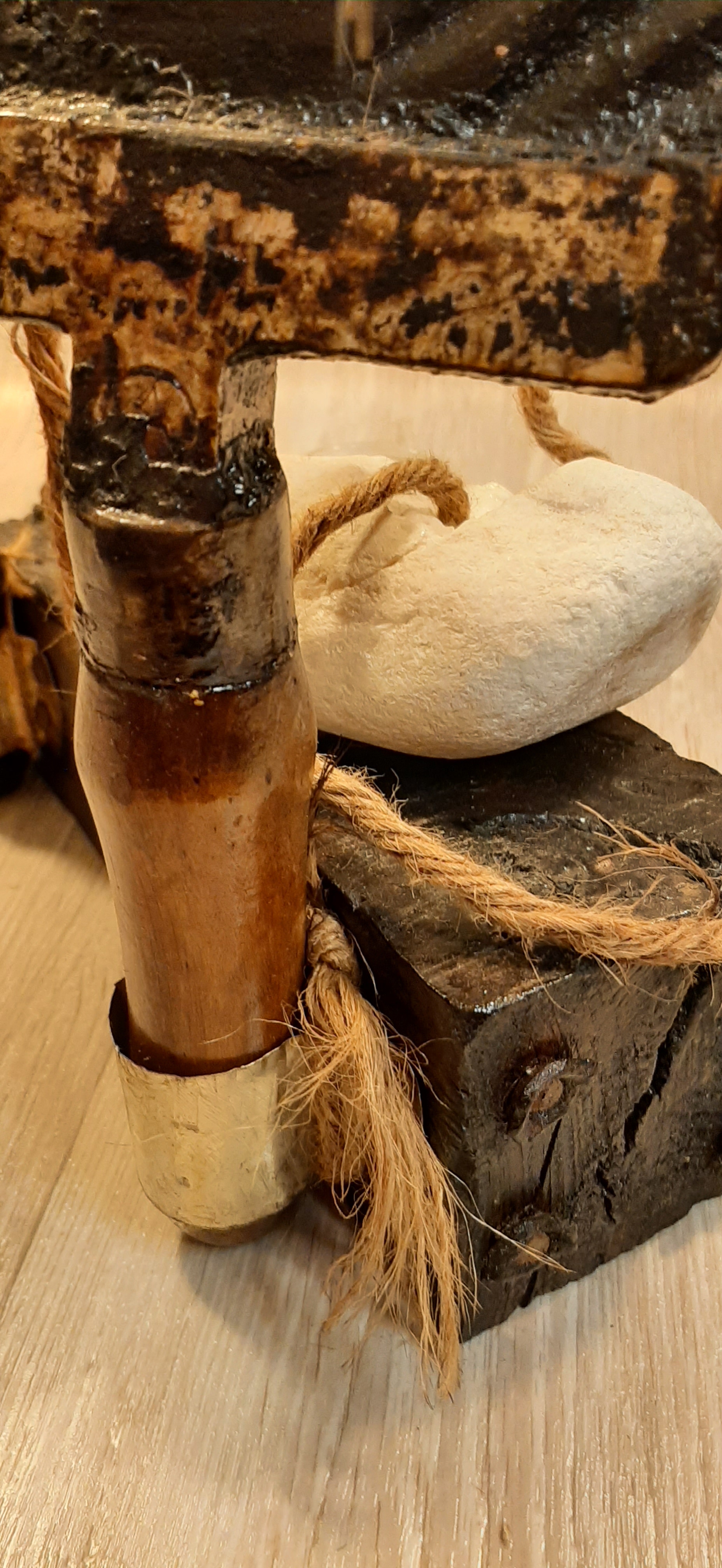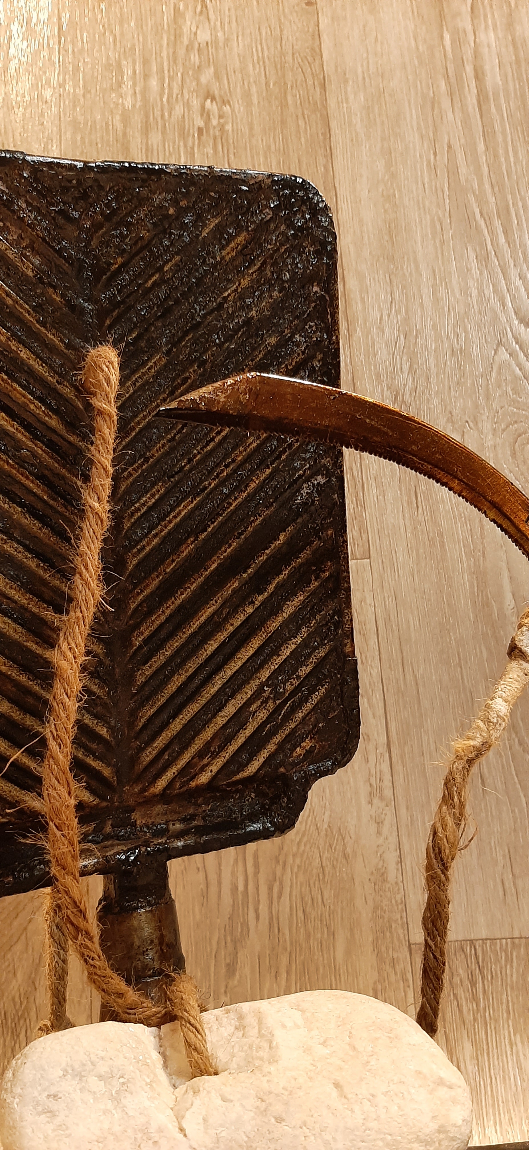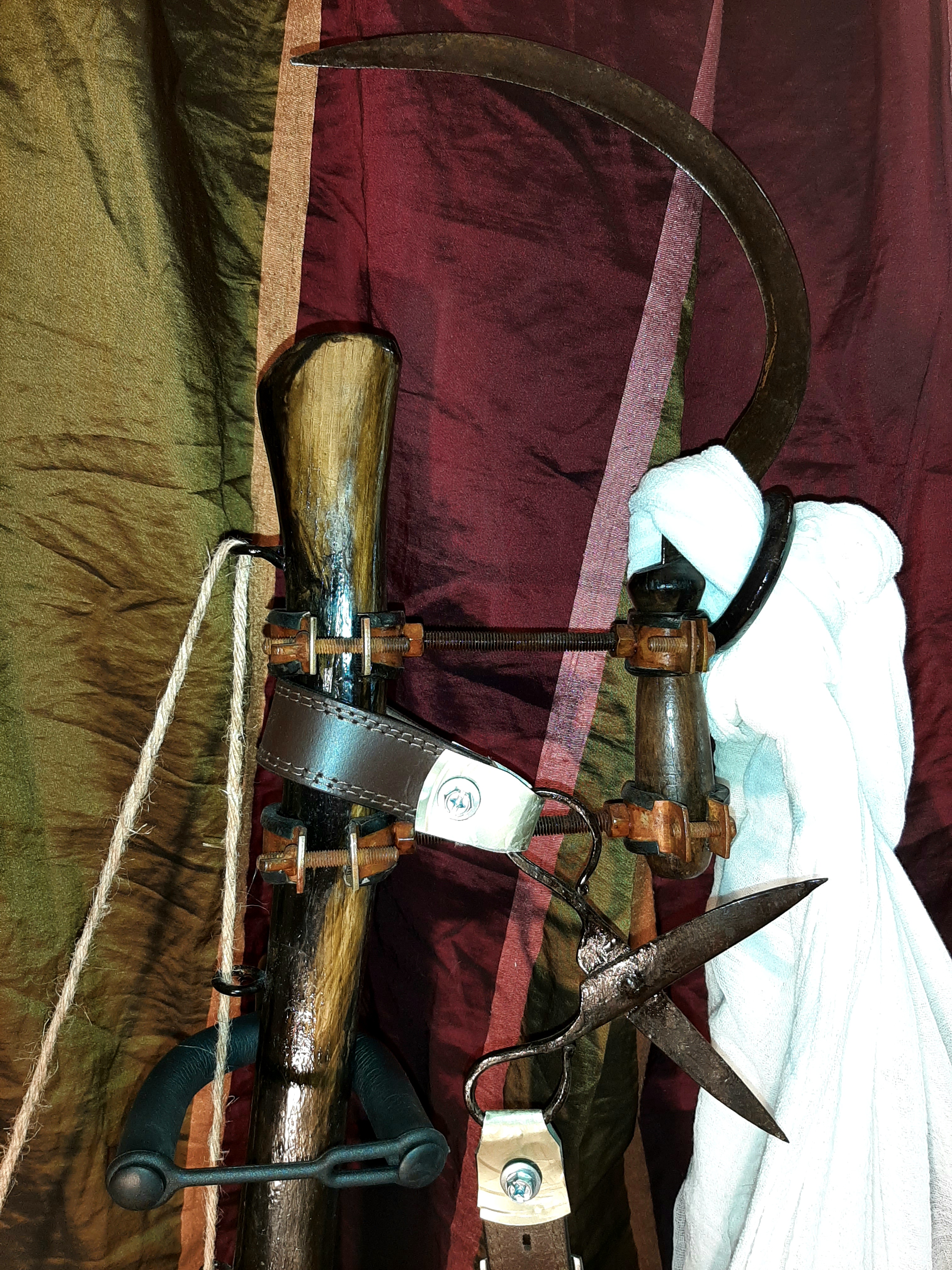Obiecte: Grătar metalic, Secere, Lemn (stejar), „Ventuză” de sticlă, Sfoară de Cânepă, Piatră de Râu