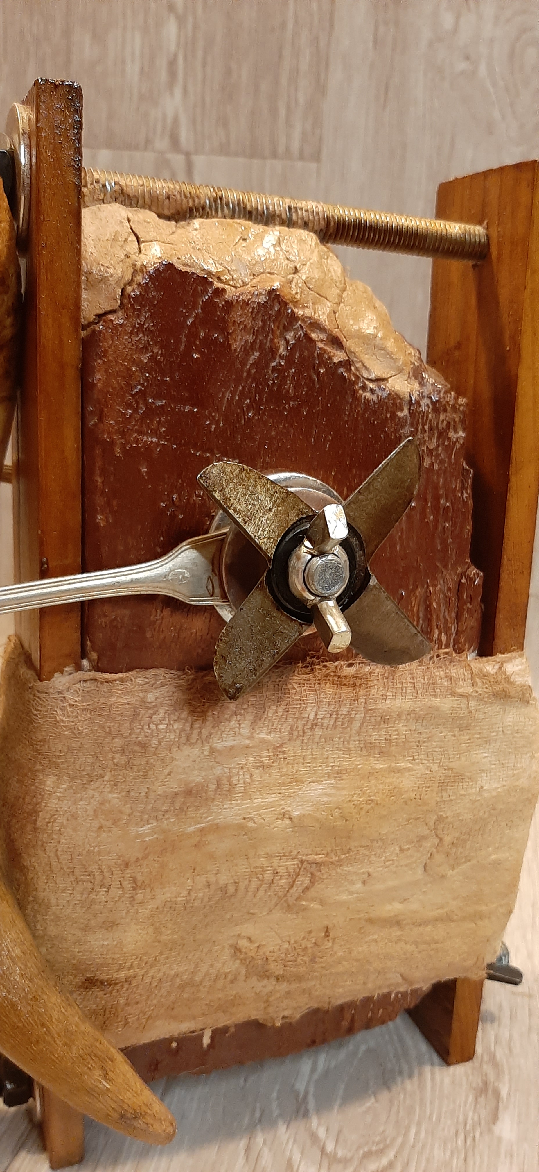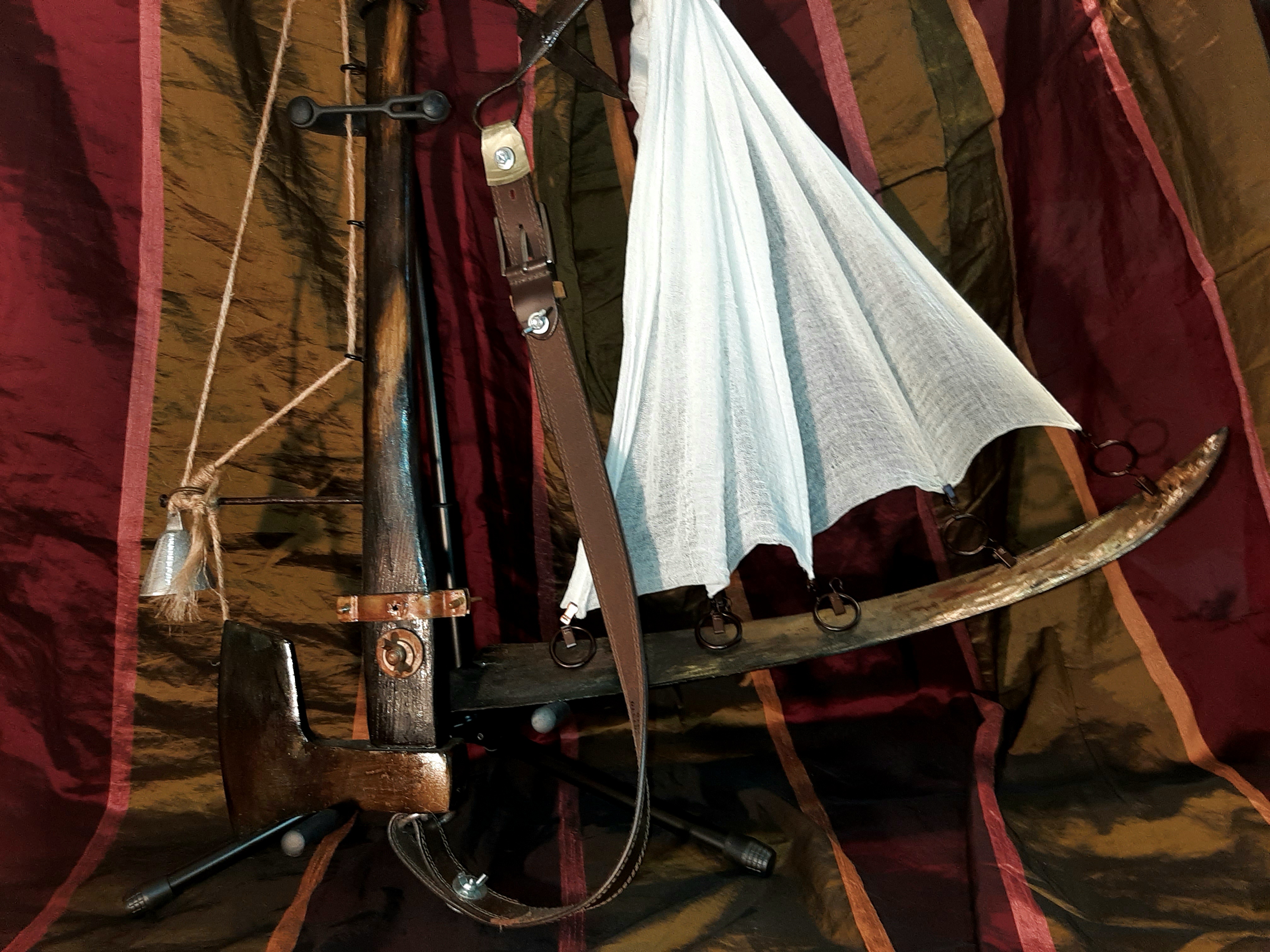 Materiale: Metal, Lemn, Piele, Bumbac, Cânepă, Cauciuc, Oxid de Fier, Shellac, Terebentină, Rășină Dammar și Ceară de Albine
