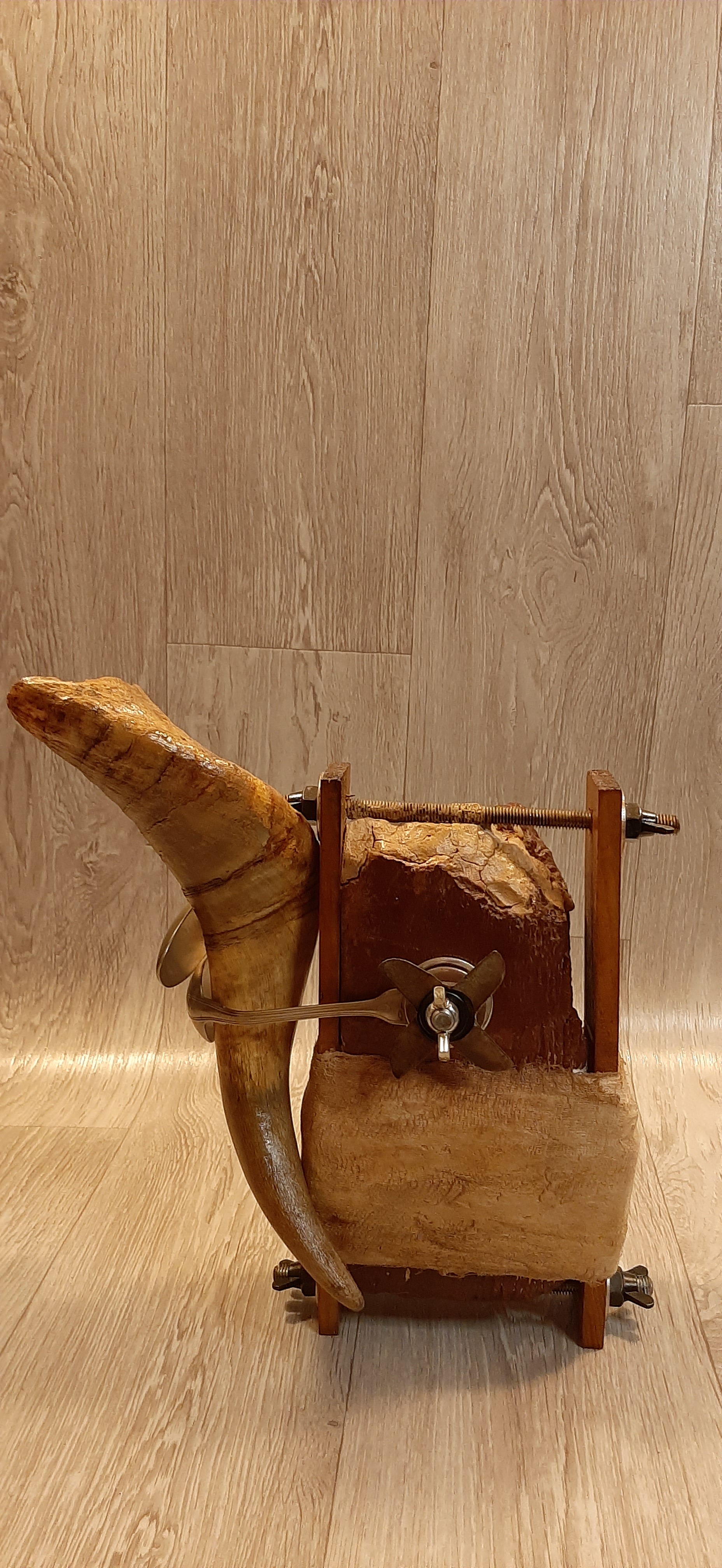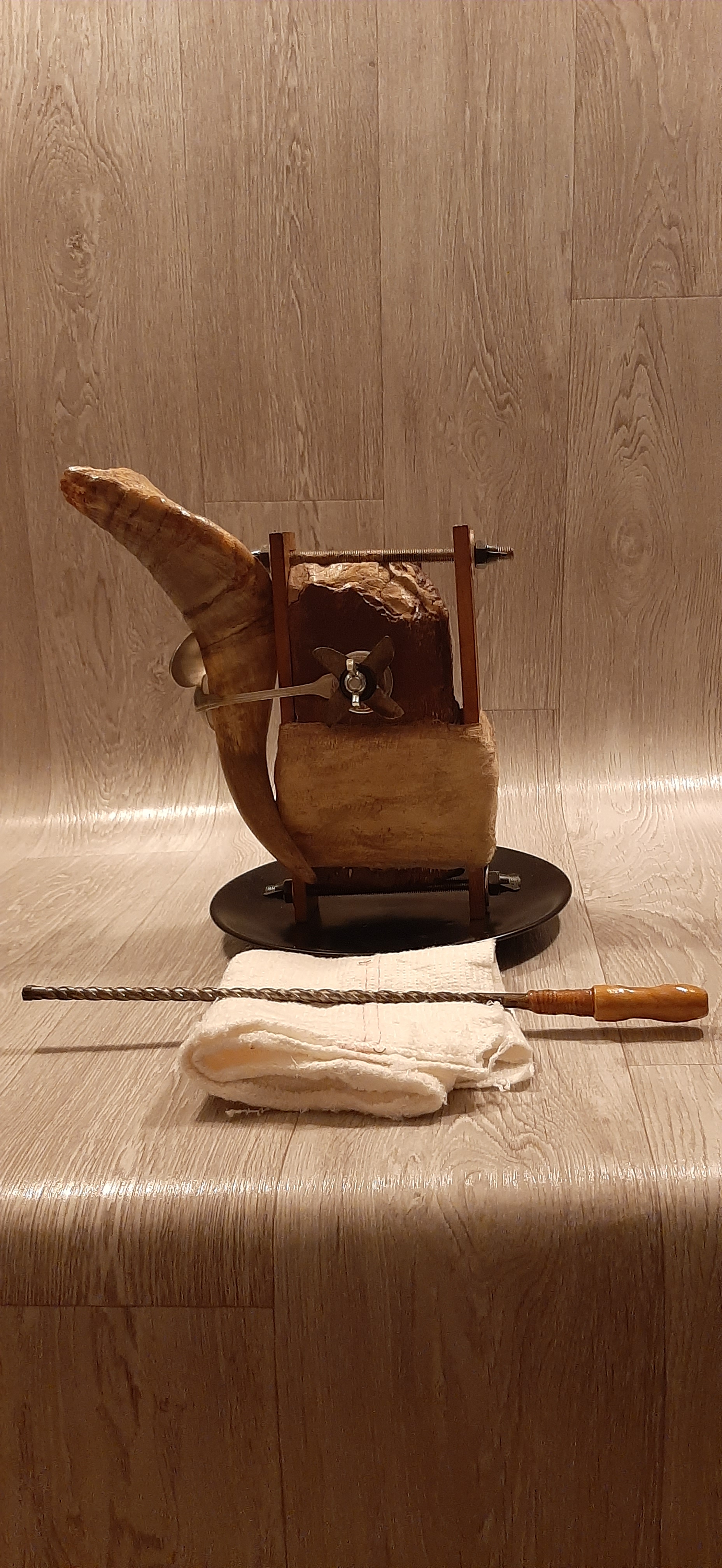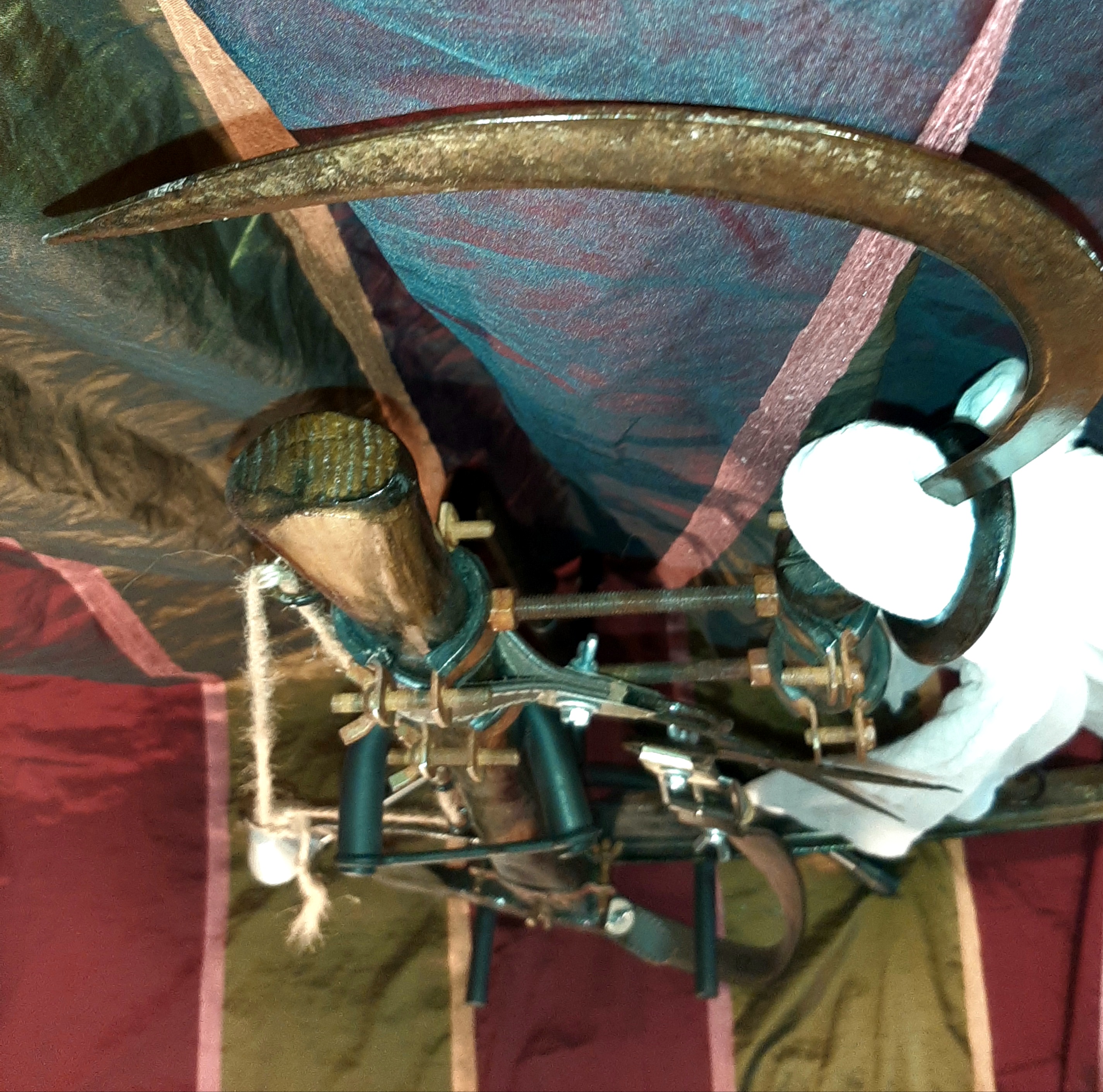 Materiale: Lut Ars, Metal, Lemn, Corn de Berbec, Bumbac, Metal, Lemn, Ipsos, Shellac, Oxid de Fier, Shellac, Terebentină, Rășină Dammar și Ceară de Albine