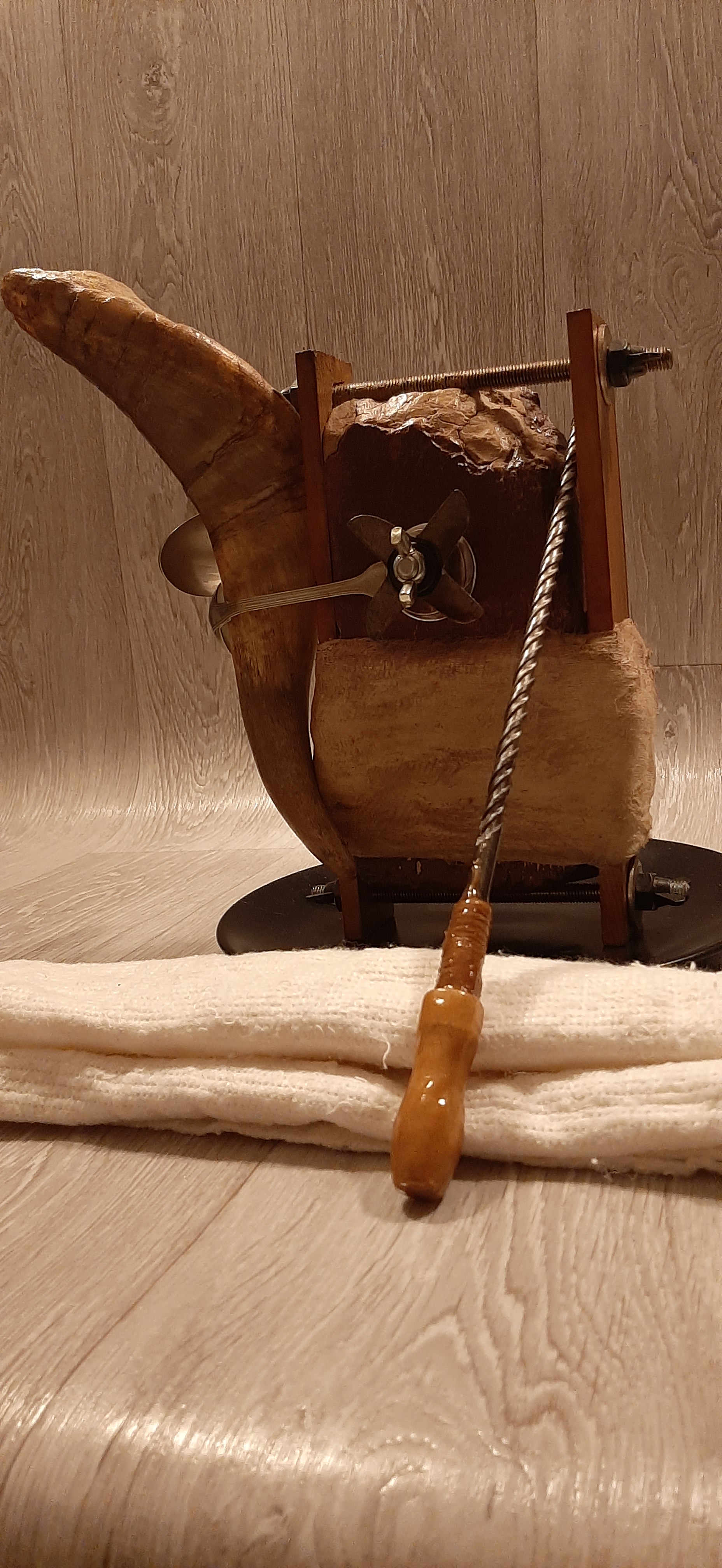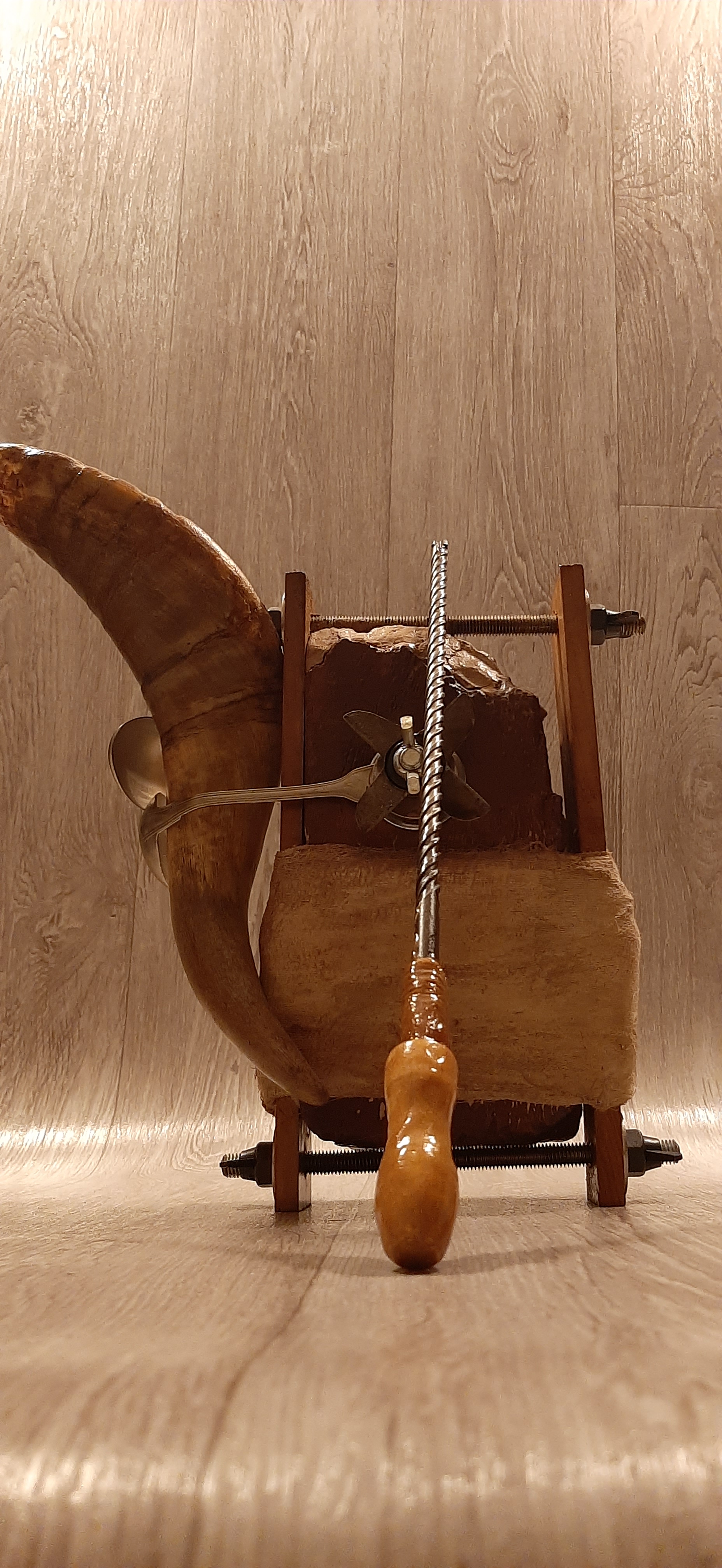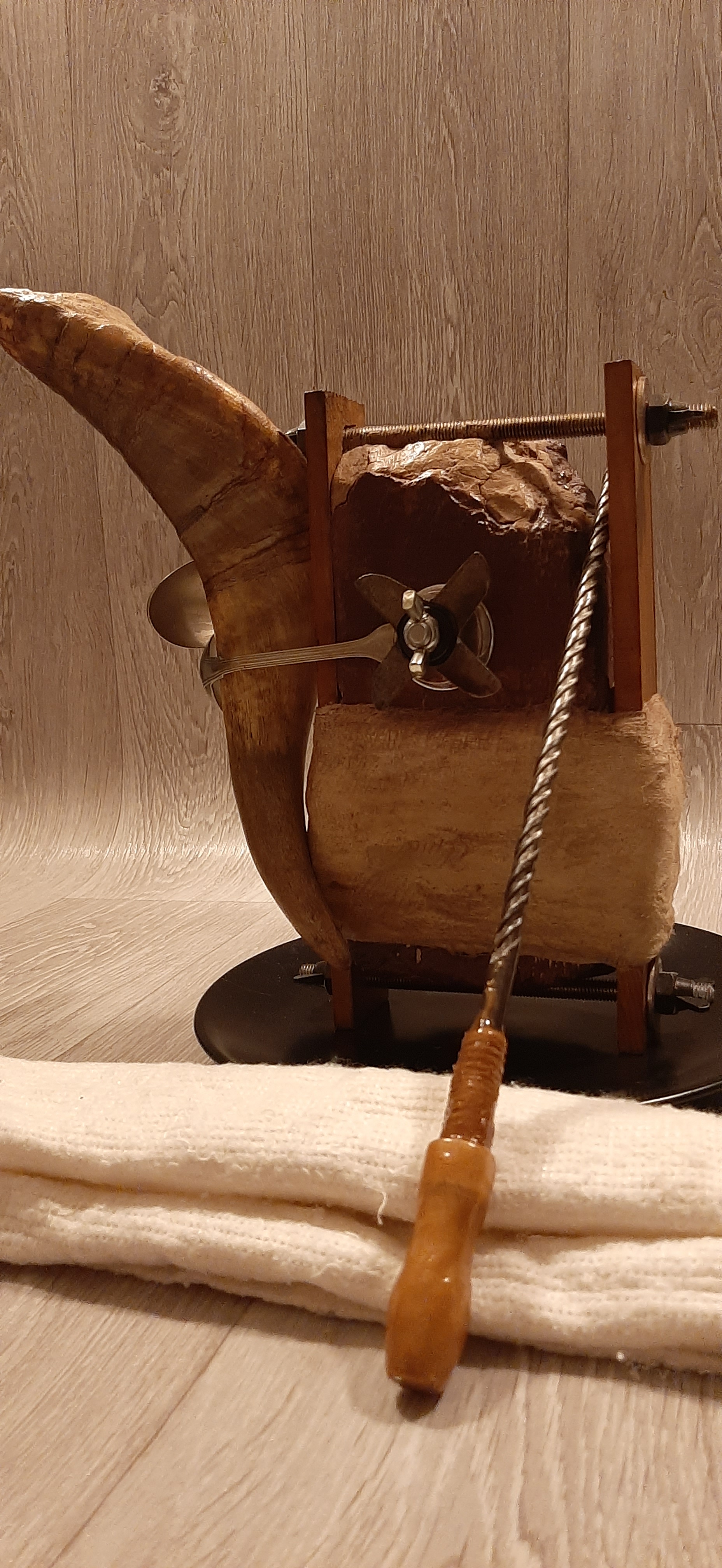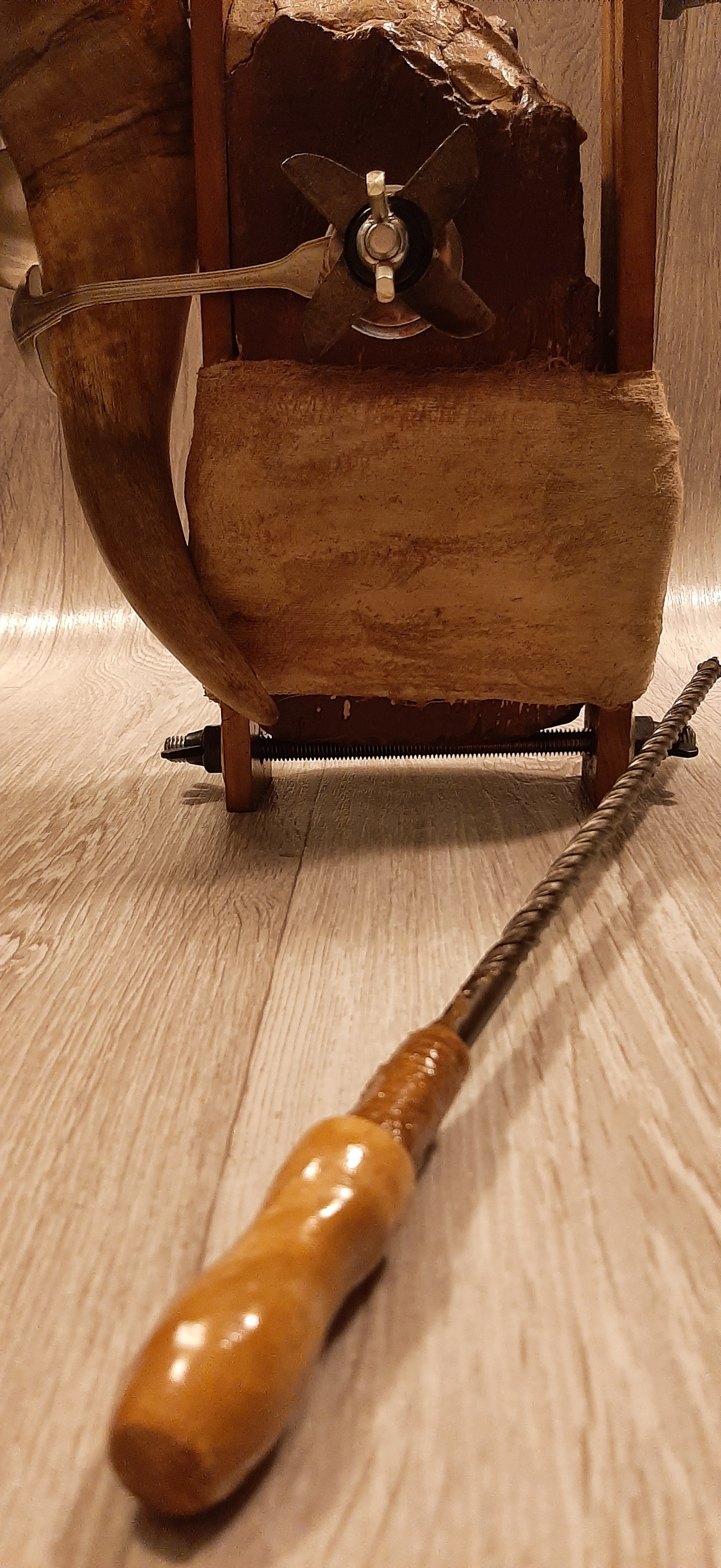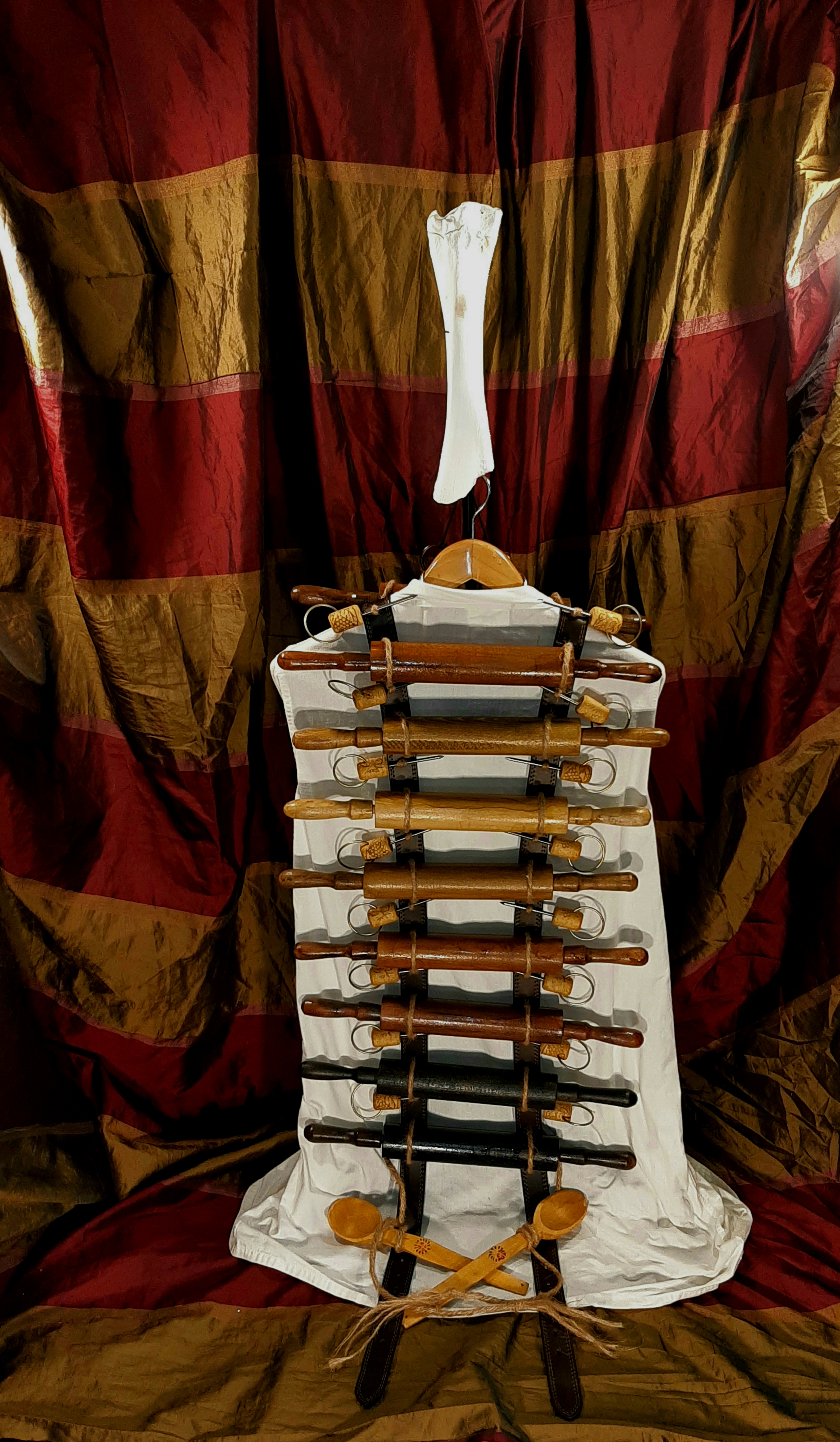 Obiecte: Tocătoare de Lemn (fag), Pene (păun,struț și fazan), Cuie, Corn de Ciută, Inel de Draperie, Os de Miel, Sfoară de Cânepă